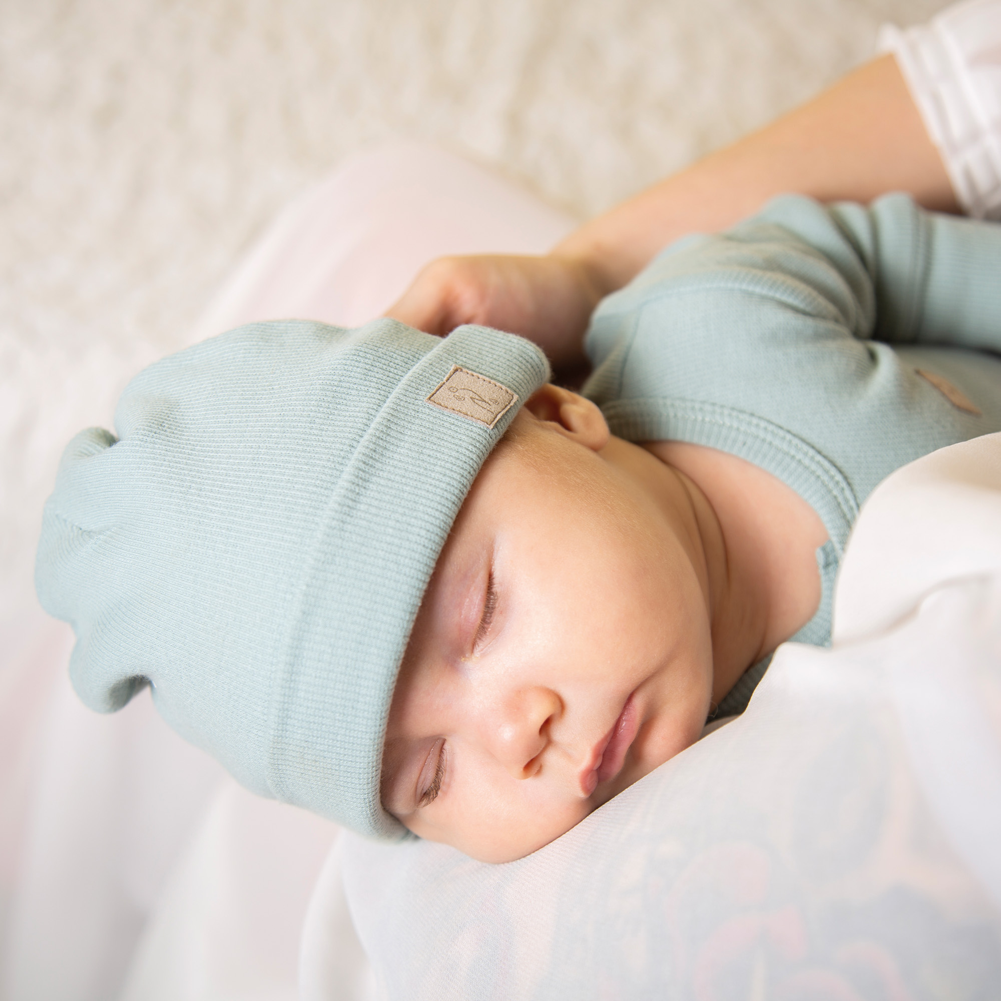 Weiche, atmungsaktive und unverformbare Mütze aus GOTS-zertifizierter Naturbaumwolle, um Atmungsaktivität und Wärmeregulierung zu gewährleisten und gleichzeitig die Haut kühl und trocken zu halten.