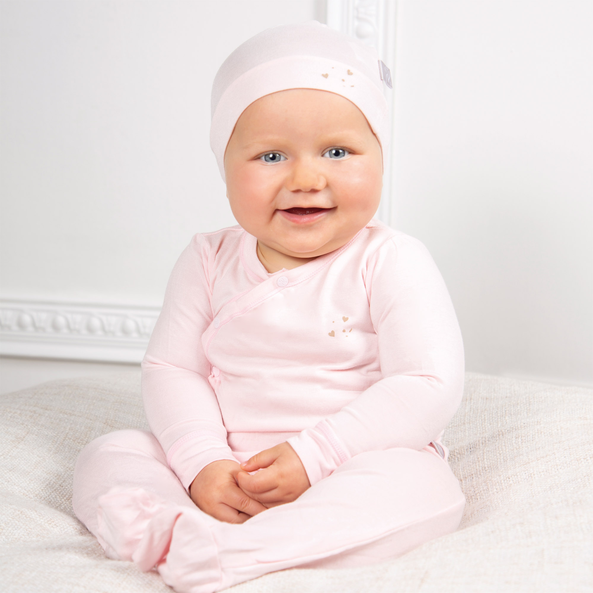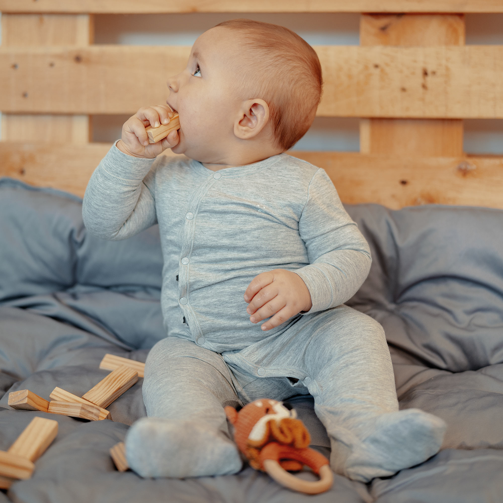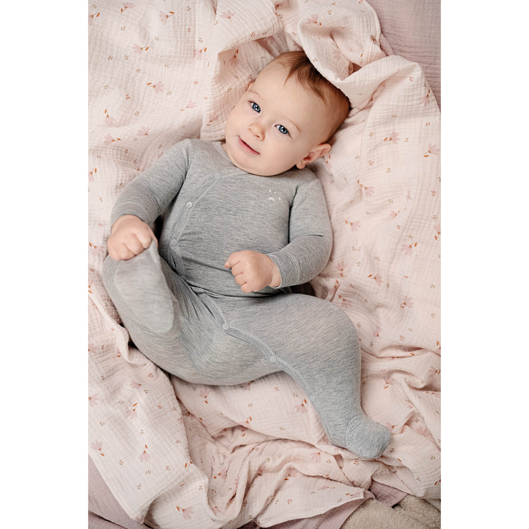 Strampler mit füßen aus Bambus Jersey erhältlich in Himmel, Cremeweiß, Rosa, Grau melange.