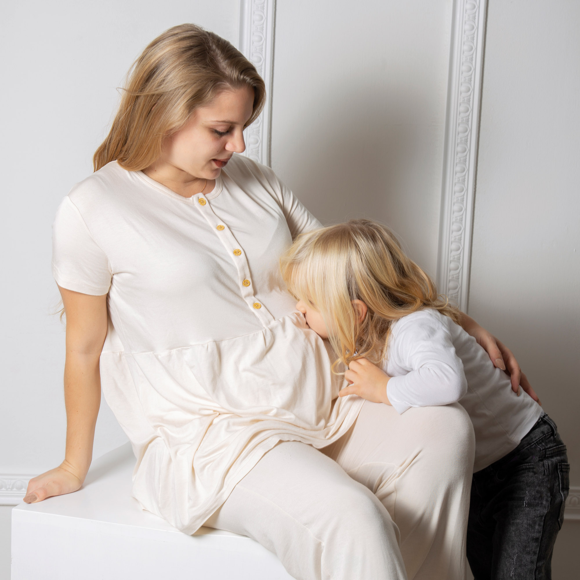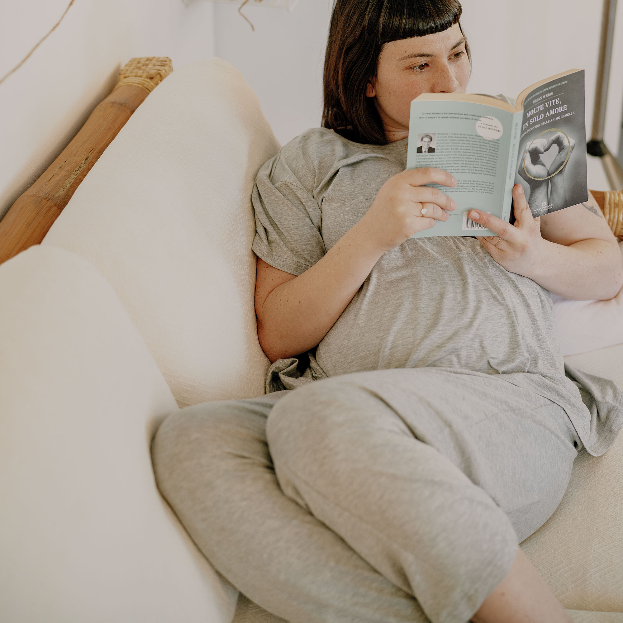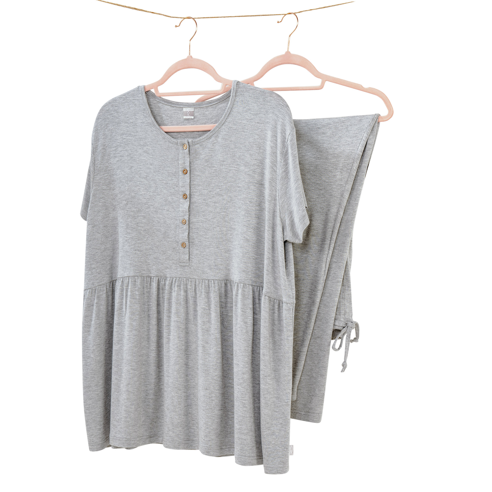 Das Pyjama-Set besteht aus einem kurzärmeligen Oberteil mit Frontöffnung für den perfekten Einsatz vor der Geburt und während der Stillzeit. Gleitet wie Seide auf der Haut und verhindert Juckreiz. Im Sommer erleichtern die Weichheit des Bambus und seine schweißhemmenden Eigenschaften die ersten Nächte als Mutter. Verstellbare lange Hose.