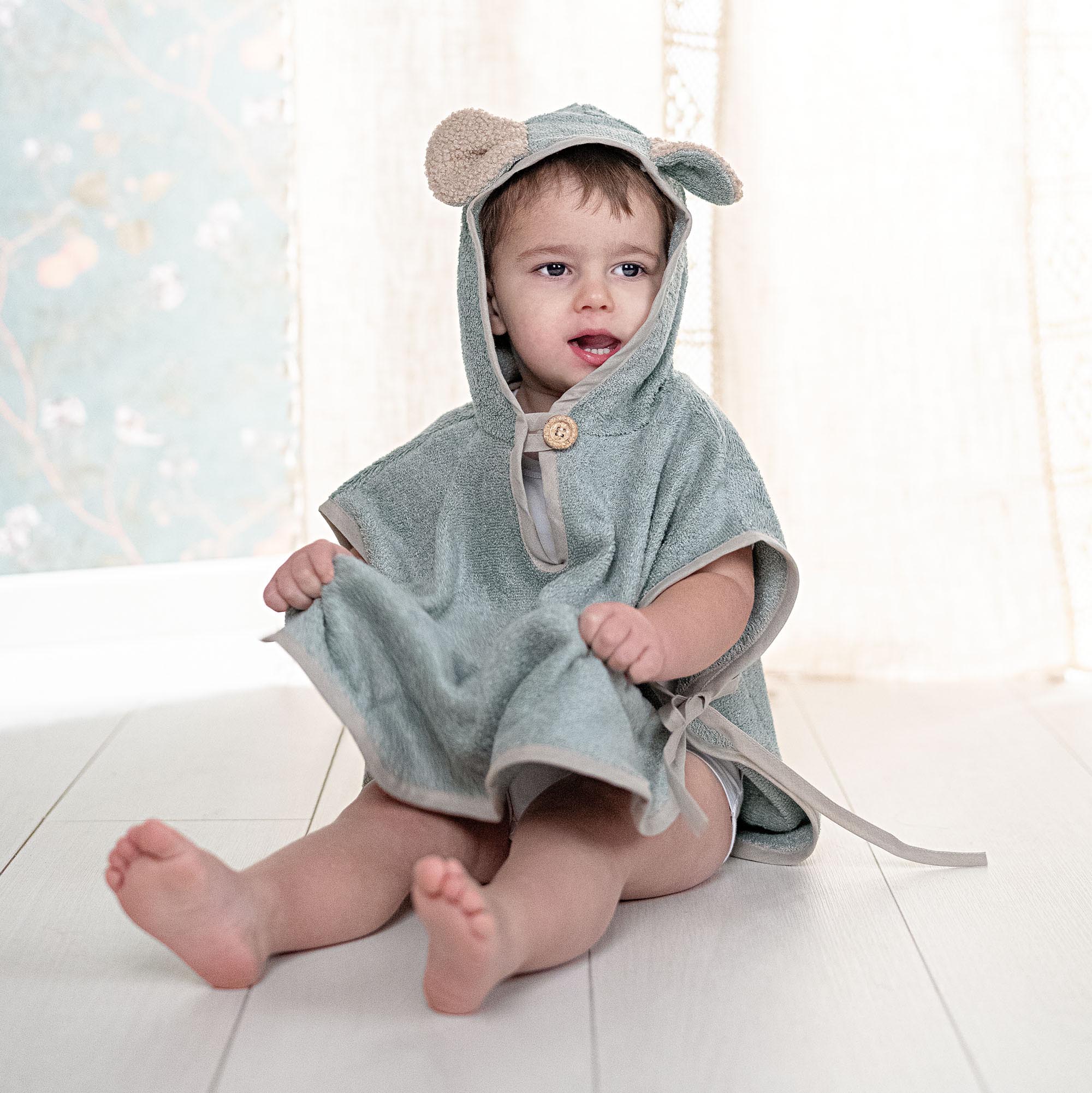 Die Weichheit von Bambus streichelt die Haut Ihres Babys. Am Strand, im heimischen Pool, der Poncho ist immer dabei. Erhältlich in den Größen 0–2 Jahre und 2–4 Jahre.