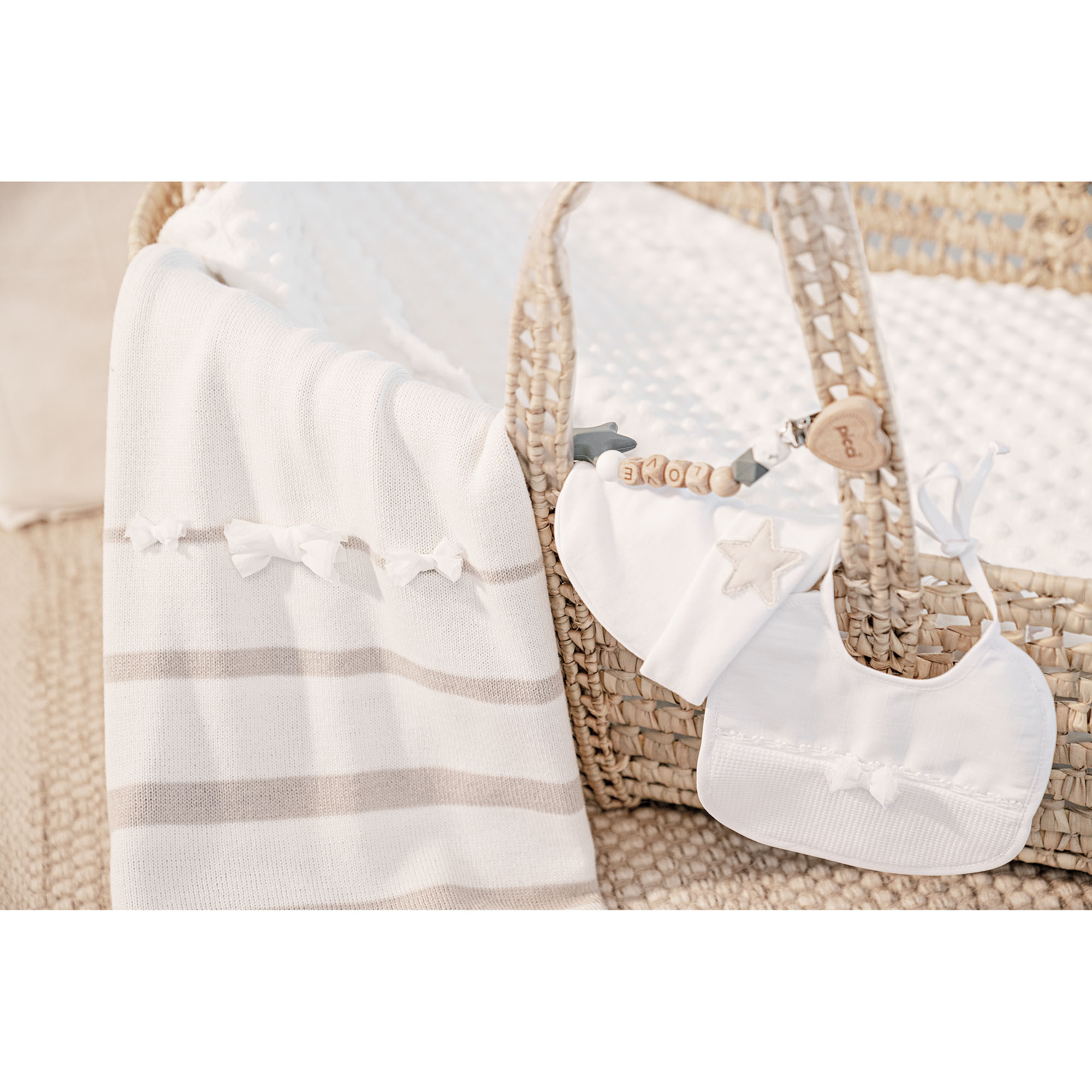 PICCI-Lätzchen sind für maximalen Komfort konzipiert und aus völlig natürlichen und hypoallergenen Materialien hergestellt, um die empfindliche Haut des Babys zu schonen.