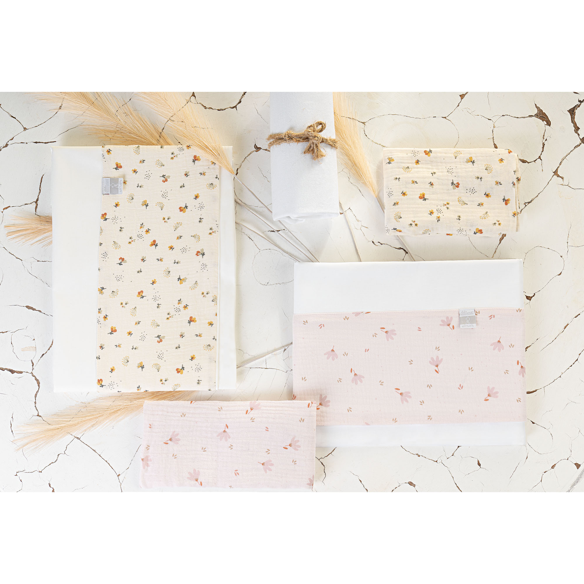 Das NATURAL Wiegen-Set besteht aus: Laken + passendem Kissenbezug. Beim Ausruhen ist es wichtig, dass das Kind von atmungsaktiven, natürlichen und hypoallergenen Materialien umgeben ist. Eine Farbpalette, die speziell entwickelt wurde, um dem Schlafzimmer eine entspannende und zarte, aber gleichzeitig modische Atmosphäre zu verleihen.