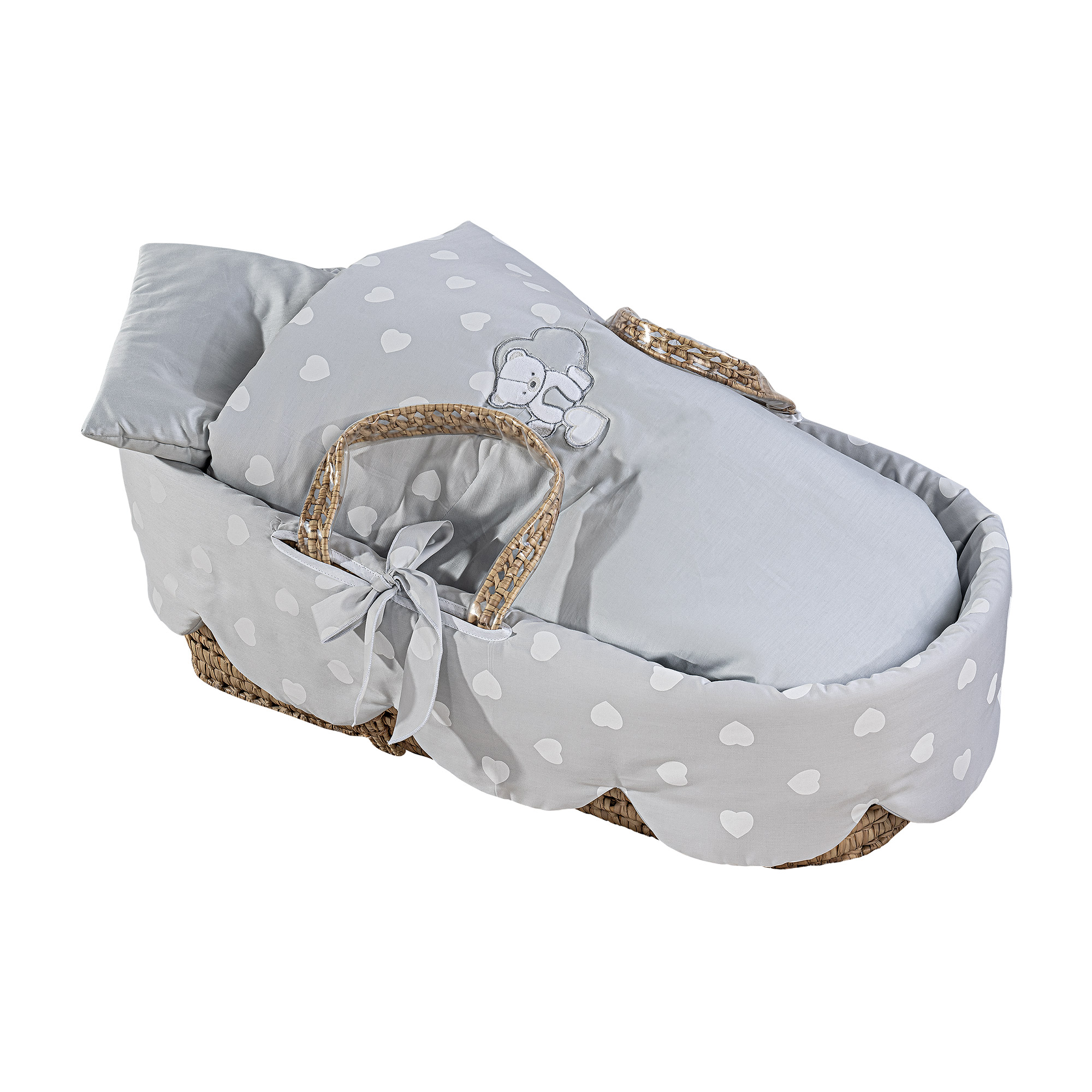 EigenschaftenPalmenkorb mit bestickter Decke, Kissen und Matratze