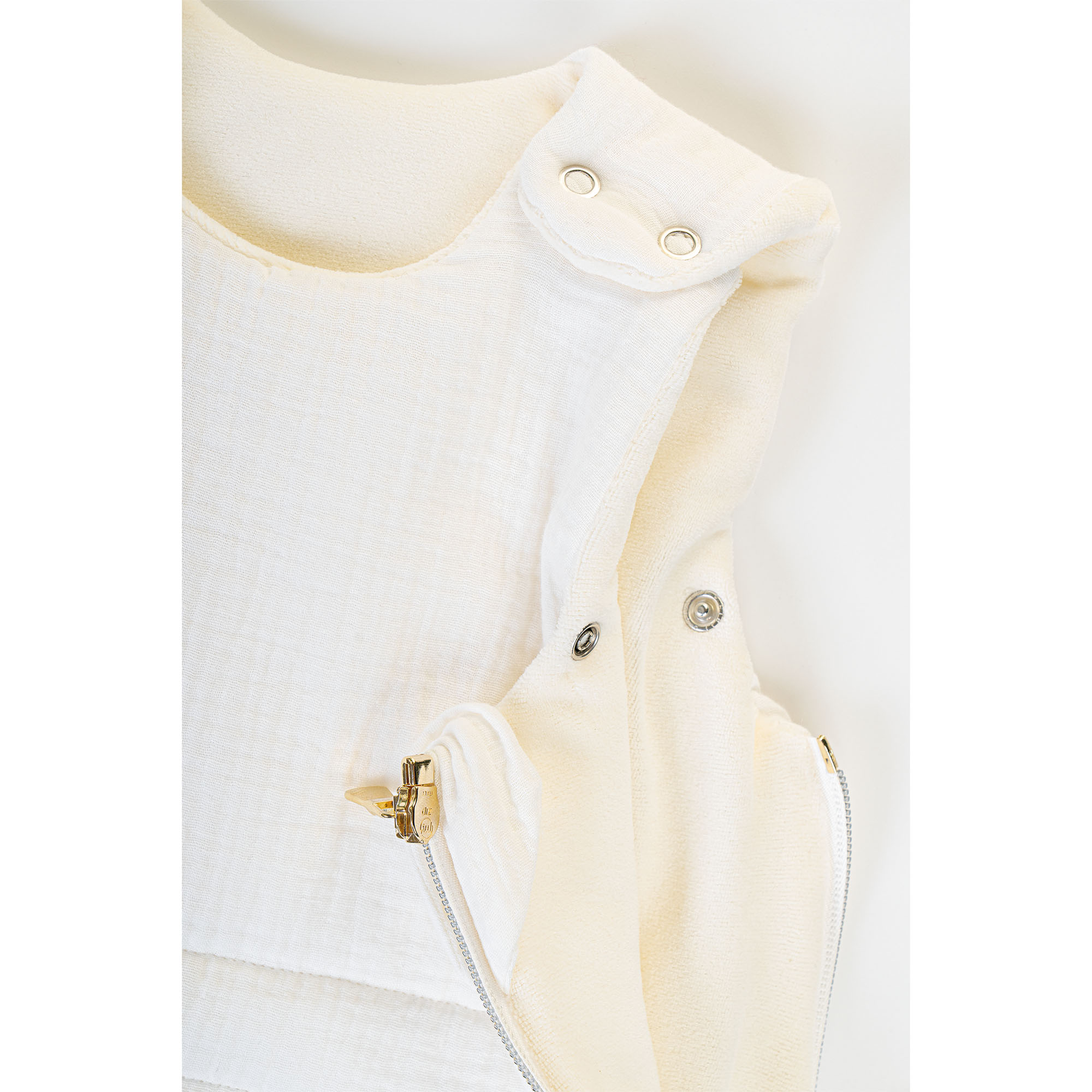 Der 70 cm große Schlafsack Small ist ideal für Babys von 0 bis 6 Monaten. Es hat einen Tog-Wert von 2,2 und eignet sich besonders für die Herbst- und Wintersaison mit den entsprechenden Kleidungsvarianten. Die Struktur des Schlafsacks selbst trägt zur Ruhe des Babys bei. Die Soft-Slide-Reißverschlüsse machen das Windelwechseln über Nacht schneller und bequemer.