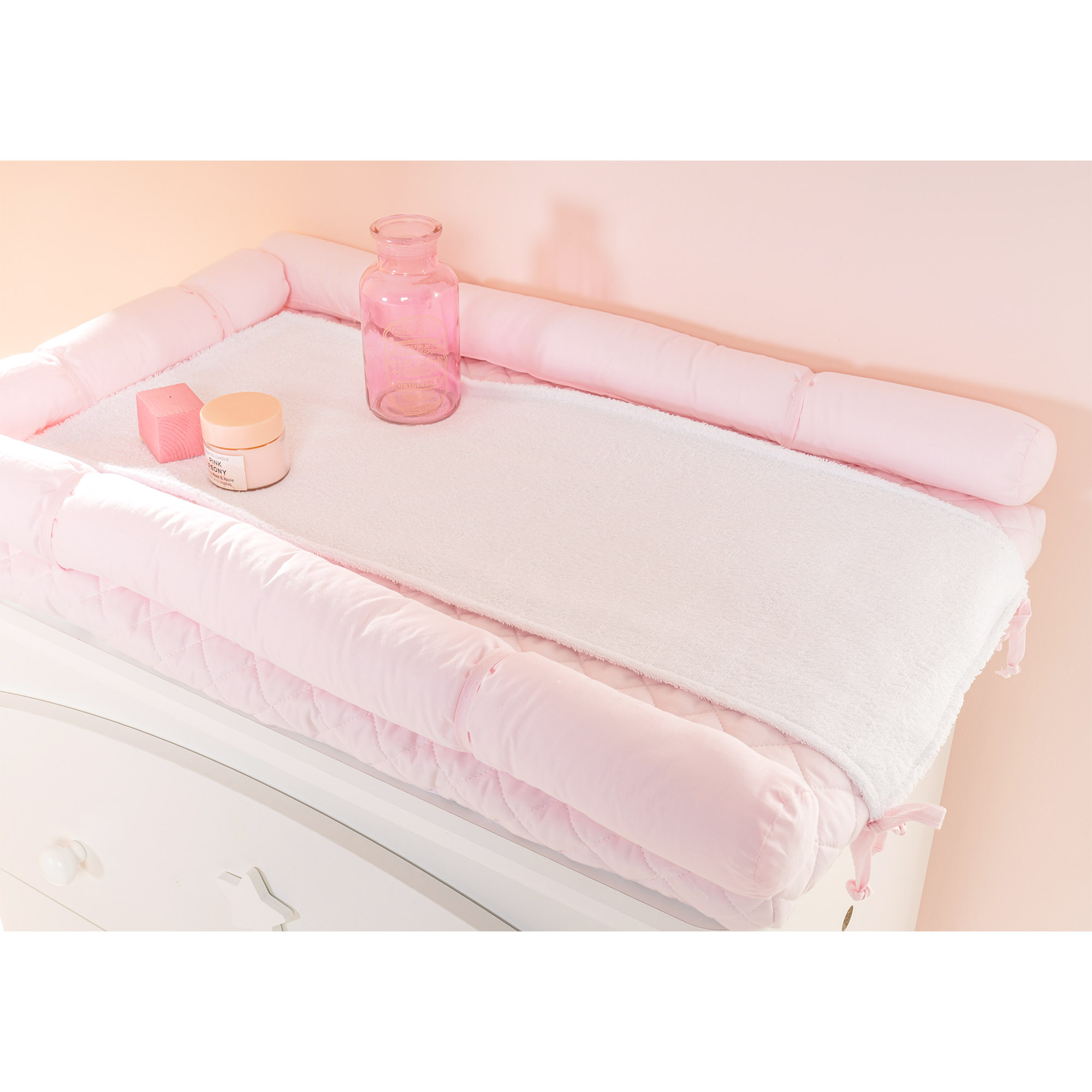 Der Wickeltisch aus Stoff mit passender Auflage eignet sich perfekt für größere Kommoden und Kommoden. Es kann mit der Kommode und dem Kinderbett aus derselben Kollektion kombiniert werden.