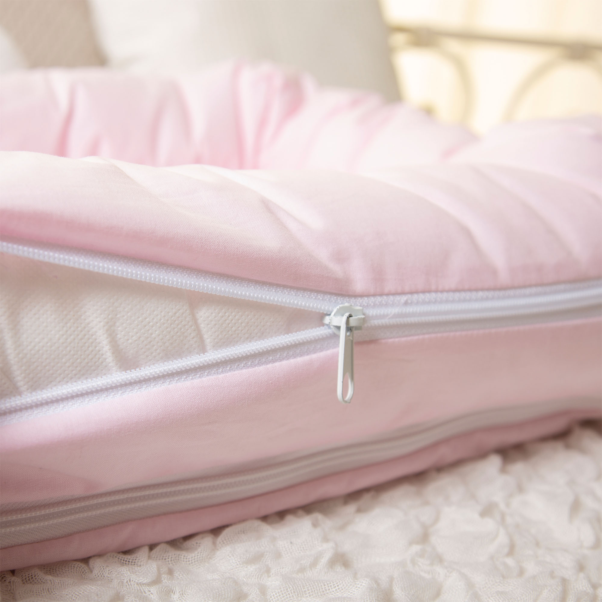 Doppia zip per consentire facilmente la rimozione della parte superiore dal materassino sia per il lavaggio che per l’utilizzo a bombolino riduttore. Ovatta interna anallergica rivestita in TNT per un’estrazione più pratica e igienica, semplice modalità di lavaggio favorita anche dall’estraibilità. Soffice protezione necessaria al tuo bebè per i primi mesi di vita con la delimitazione di un ambiente ridotto per far la nanna.