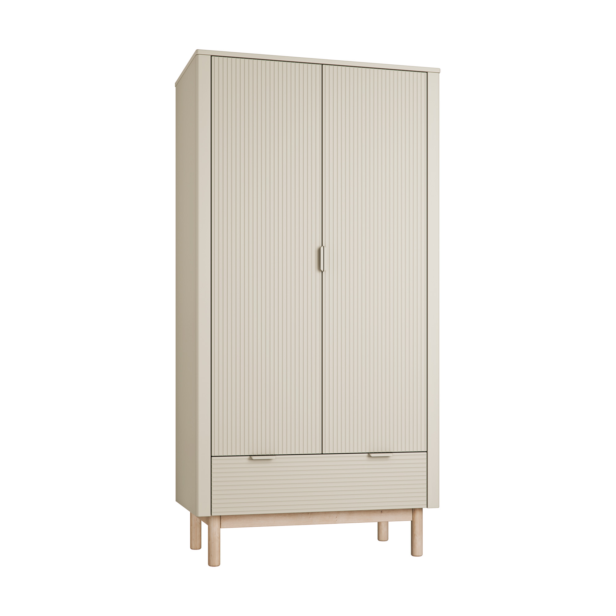 L’armadio abbinato con cassetto esterno è organizzato al suo interno in modo molto spazioso e adatto ad essere utilizzato come appenderia anche quando il bambino sarà più grande.