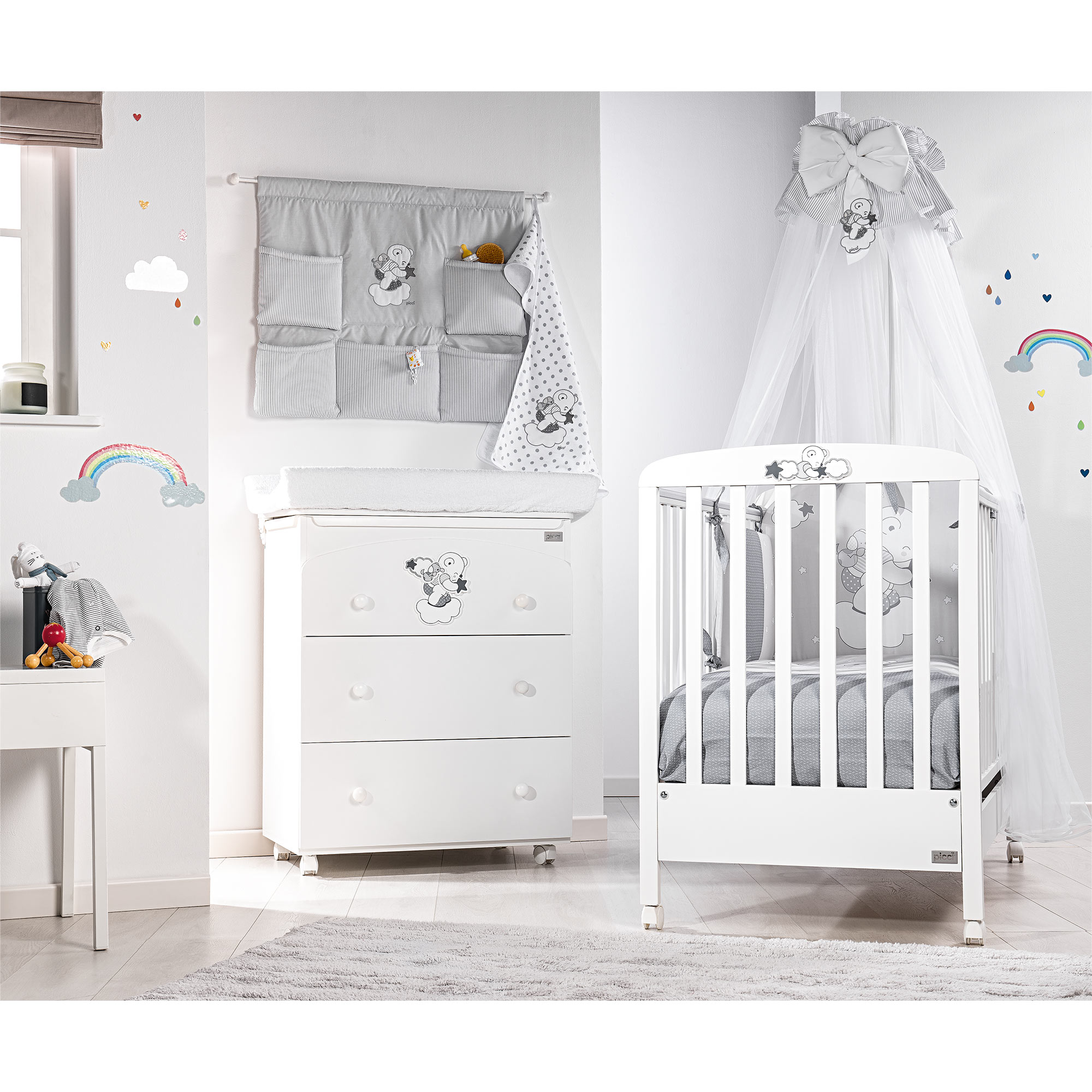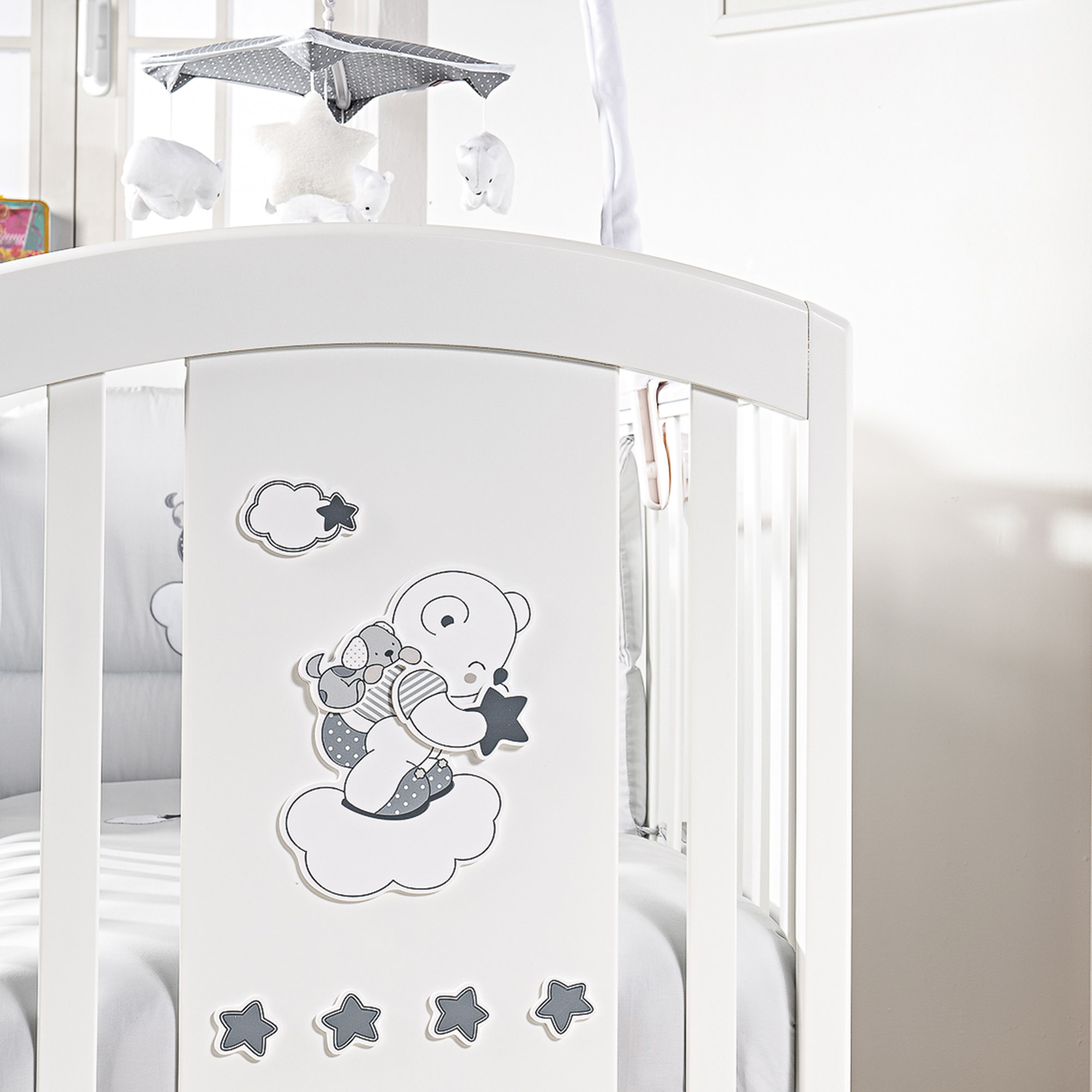 Questa copertina in pile ricamata è l’ideale per la mezza stagione. Il bambino si sentirà caldo e protetto nel suo letto e il delicato richiamo conferirà un tocco di eleganza alla cameretta.