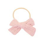 Lassen Sie sich von der Süße des Stirnbandes/der Mütze mit der zentralen Schleife überzeugen. Es ist weich und atmungsaktiv und in drei Farben erhältlich: Erde, Baby pink und Milch.