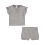 Zarte Taubengrau- und Naturgrau-Melange für set Body mit Hose aus Bio-Baumwolle. Ideal für die Freizeit, aber auch als Schlafenszeit-Set.
