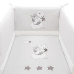 Die Kollektion bietet ein Set für das Kinderbett komplett mit Kissenbezug, Bettdecke und Bettstoßstange. Das Set beinhaltet den passenden Bettstoßstange, der ein unverzichtbares Accessoire zum Schutz Ihres Kindes ist und dank romantischer Schleifen einfach am Bettgitter befestigt werden kann. Die Bettdecke mit weicher Füllung und hochwertiger Baumwolle gibt Ihrem Kind ein angenehmes und beruhigendes Gefühl.