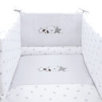 Die Kollektion bietet ein Set für das Kinderbett komplett mit Kissenbezug, Bettdecke und Bettstoßstange. Das Set beinhaltet den passenden Bettstoßstange, der ein unverzichtbares Accessoire zum Schutz Ihres Kindes ist und dank romantischer Schleifen einfach am Bettgitter befestigt werden kann. Die Bettdecke mit weicher Füllung und hochwertiger Baumwolle gibt Ihrem Kind ein angenehmes und beruhigendes Gefühl.
